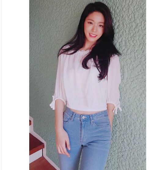 사진 속 설현은 흰색 상의와 청바지를 입고 허리 라인을 살짝 노출하며 청순미를 과시하고 있다.