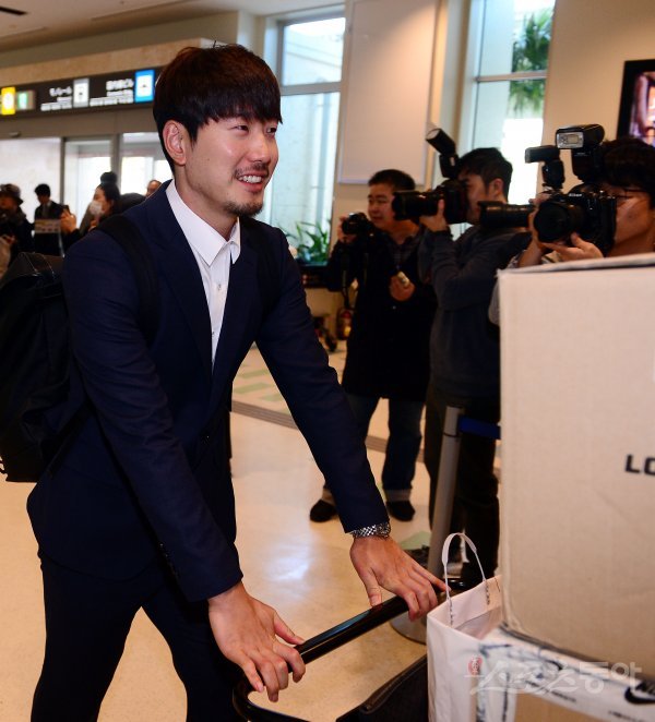 월드베이스볼클래식(WBC) 한국대표팀이 12일 전지훈련지인 일본 오키나와 나하국제공항에 입국했다. 대표팀 김재호가 입국장을 빠져나가고 있다. WBC 대표팀은 오는 22일까지 오키나와에서 훈련 및 연습경기를 치른뒤 23일 귀국한다.