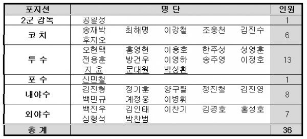 전지훈련 참가 선수단 명단