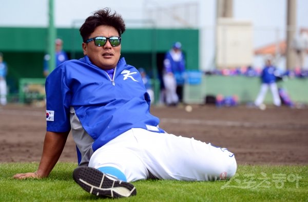 2017 월드베이스볼클래식(WBC) 한국대표팀이 14일 일본 오키나와 우루마시 구시카와 야구장에서 공식훈련을 가졌다. WBC 대표팀 김태균이 훈련을 마치고 휴식을 취하고 있다. WBC 대표팀은 오는 22일까지 오키나와에서 훈련 및 연습경기를 치른뒤 23일 귀국한다.