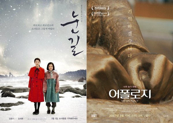 일본군 위안부 문제의 피해를 상징하는 상징물 ‘소녀상’을 지키려는 움직임이 확산되는 가운데 스크린에서도 예술의 목소리로 힘을 보탠다. 관객들에게 큰 울림을 남길 영화 두 편이 개봉을 기다리고 있다.