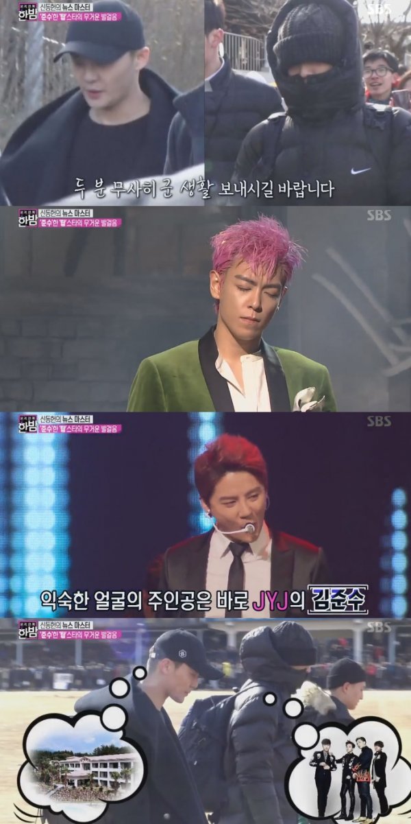 14일 SBS '본격연예 한밤'에선 '준수한 탑스타의 무거운 발걸음'이라는 제목으로 그룹 빅뱅 탑과 그룹 JYJ 김준수의 입대 소식을 전했다.