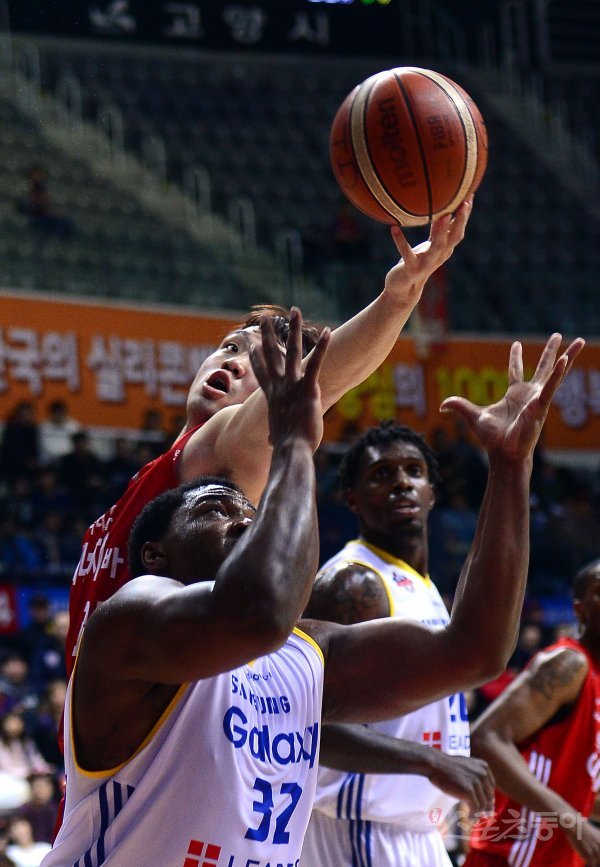 15일 고양실내체육관에서 열린 ‘2016~2017 KCC 프로농구’ 삼성과 오리온 경기에서 오리온 이승현이이 삼성 크레익에 앞서 리바운드 볼을 잡고 있다.