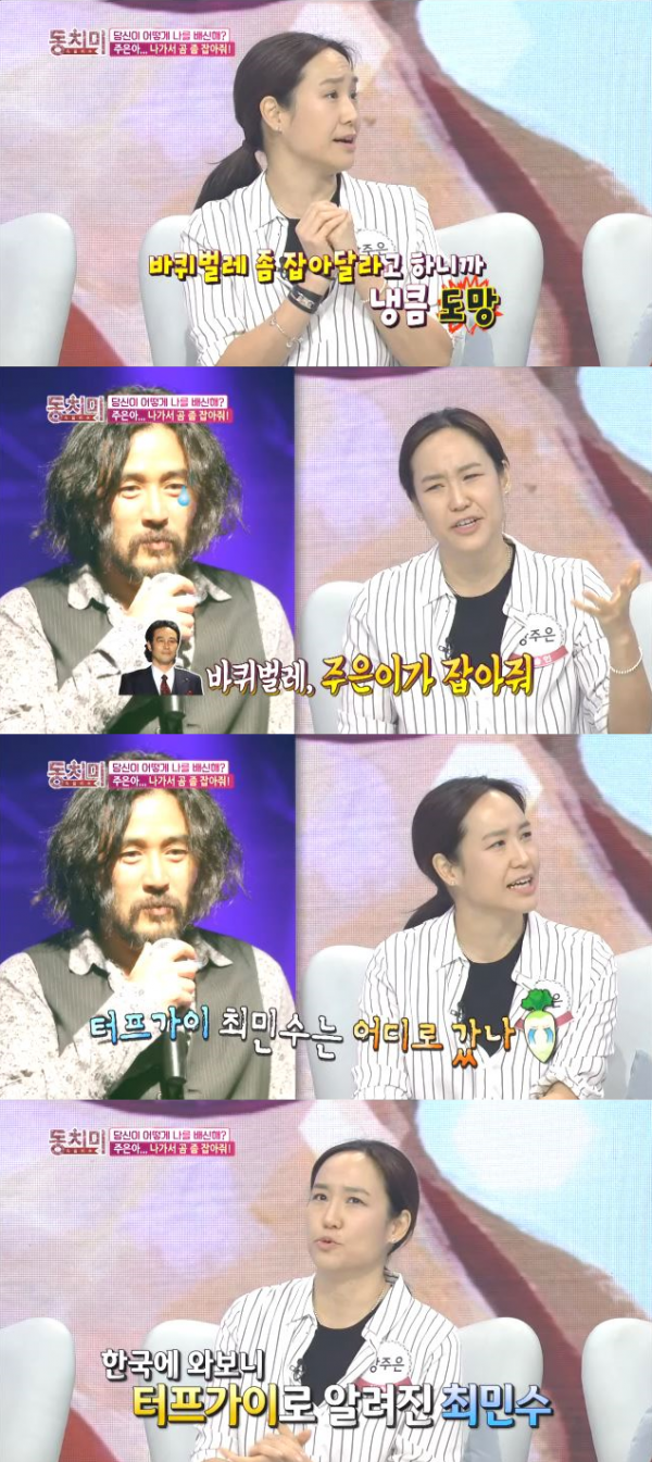 이날 ‘동치미’에 첫 출연한 배우 최민수의 아내 강주은은 “나는 남편에게 심하게 배신감을 느낀 적이 있다”고 운을 떼 궁금증을 안겼다. 이어 “한국에서 남편은 카리스마 있고 상남자 같은 이미지로 비춰지는데, 실제로는 전혀 아니다. 바퀴벌레도 무서워한다”면서 의외의 모습을 밝혀 현장을 깜짝 놀라게 했다.