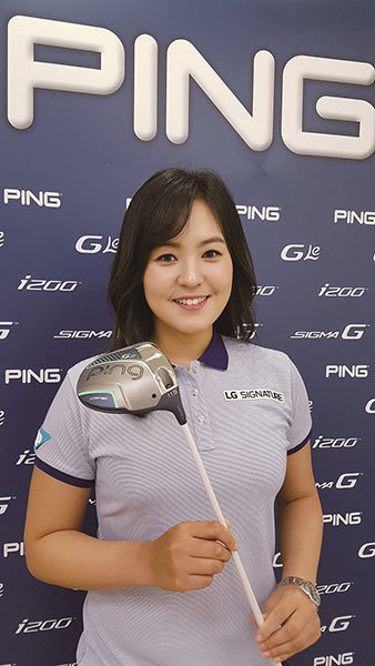 전인지가 올해 사용할 핑골프의 드라이버를 들고 포즈를 취하고 있다. 사진제공 | 삼양인터내셔널
