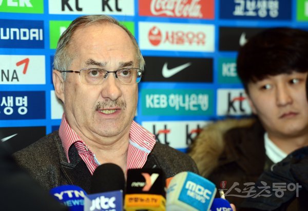 두달여의 유럽 휴가를 마친 슈틸리케 한국축구대표팀 감독이 20일 인천국제공항을 통해 귀국한 뒤 취재진과 인터뷰를 하고 있다.슈틸리케 감독은 다음 달 23일 중국과의 원종경기와 28일 시라와의 홈경기를 앞두고 2018 러시아월드컵 최종예선 준비에 들어간다.