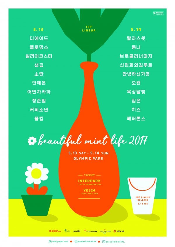봄 음악 페스티벌 ‘뷰티풀 민트 라이프 2017(Beautiful Mint Life 2017 / 뷰민라 2017)’의 1차 라인업이 공개됐다.