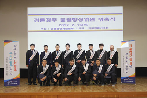 국민체육진흥공단 경륜경정사업본부는 2월16일 광명 스피돔 광명홀에서 ‘경륜경주 품질향상위원회’위원 위촉식을 열었다. 사단법인 한국경륜선수회 주관으로 열린 이번 행사에서 올 시즌 경륜경주 품질향상을 위해 자발적으로 노력할 30명의 경륜 선수들이 위원으로 위촉됐다.