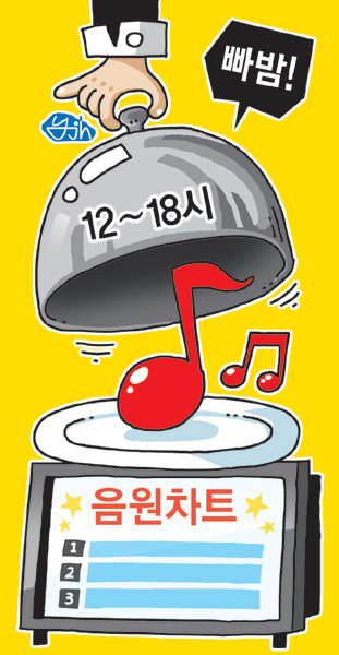 지니와 올레뮤직, 벅스뮤직 등 일부 음악사이트가 27일부터 낮 12시부터 오후 6시 사이 발표하는 음원만 실시간 차트에 반영한다. 최대 사이트인 멜론 측도 “실시간 차트 개편 세부사항을 최종 점검하고 있으며, 다른 사이트와 맞춰 실시할 계획”이라고 밝혔다.