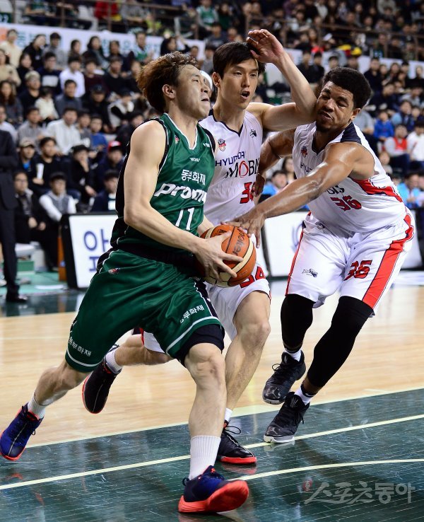 22일 원주종합체육관에서 열린 ‘2016~2017 KCC 프로농구’ 울산모비스와 원주동부 경기에서 동부 김현호가 모비스 와이즈의 수비를 뚫고 골밑을 공격하고 있다.