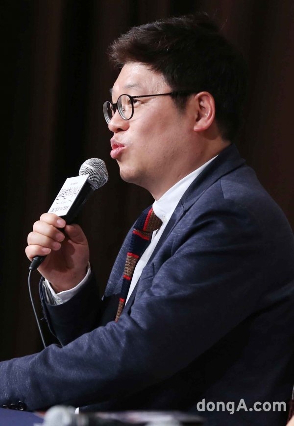 홍석구 PD가 23일 오후 서울 영등포 타임스퀘어에서 열린 드라마 완벽한 아내 제작발표회에서 인사말을 하고 있다.