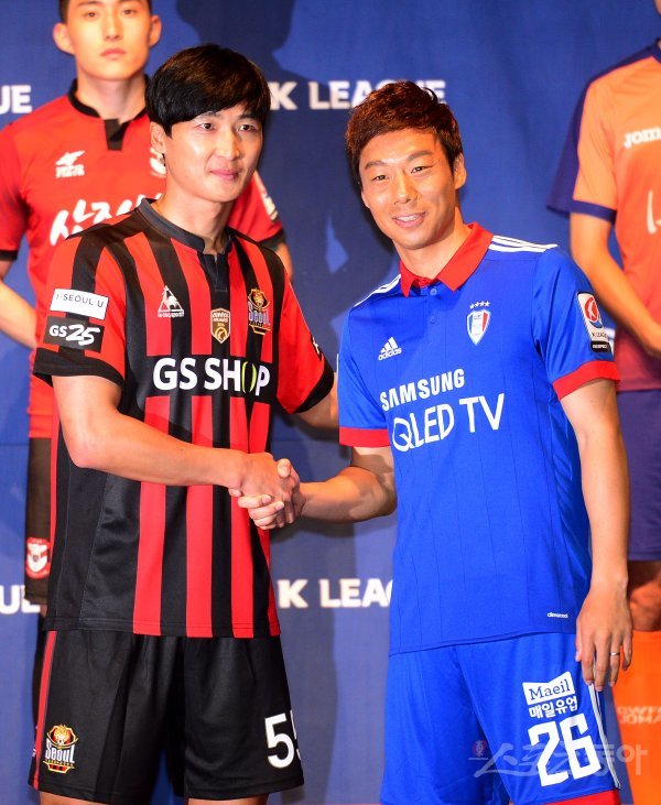 K리그 12개 구단 선수 및 감독들이 참석한 가운데 23일 서울 논현동 파티오나인에서 ‘2017 K리그 클래식 미디어데이’가 열렸다. 개막전 상대인 FC서울 곽태휘와 수원삼성 염기훈이 기념촬영을 하고 있다. K리그는 오는 3월 4일에 개막한다.