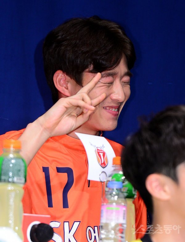 K리그 12개 구단 선수 및 감독들이 참석한 가운데 23일 서울 논현동 파티오나인에서 ‘2017 K리그 클래식 미디어데이’가 열렸다. 제주유나이티드 안현범이 셀카를 선보이고 있다. K리그는 오는 3월 4일에 개막한다.