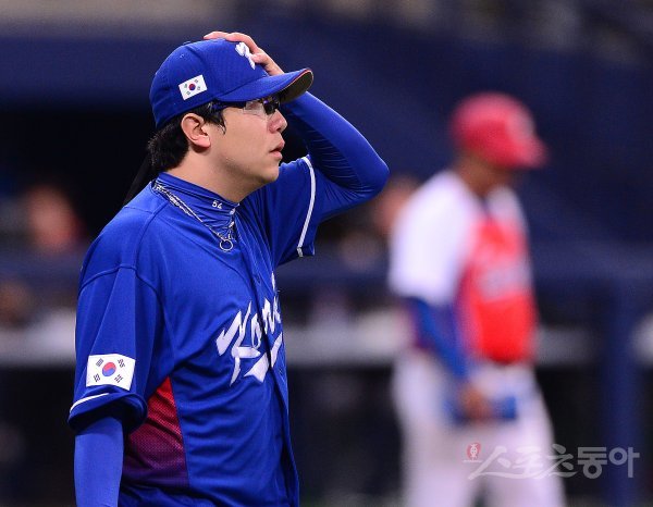 26일 서울 고척스카이돔에서 ‘2017 월드베이스볼클래식(WBC)’을 앞두고 대한민국 WBC 대표팀과 쿠바와 2차 평가전이 열렸다. 선발 양현종이 3회 2실점을 허용한 후 아쉬워하고 있다.