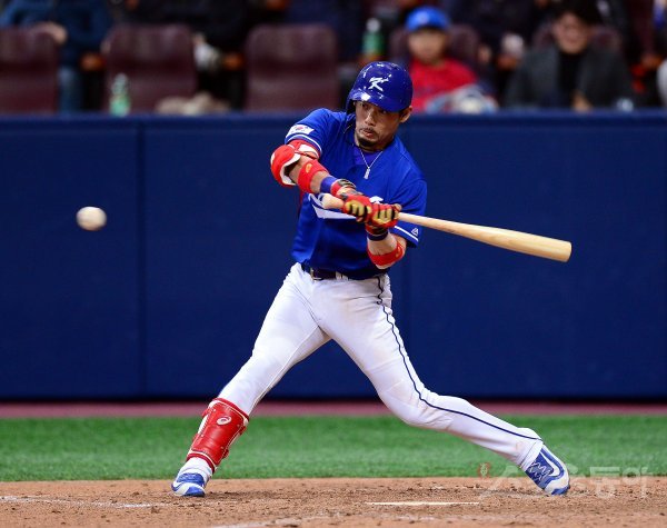 ‘2017 월드베이스볼클래식(WBC)’에 참가하는 한국 야구대표팀이 26일 고척스카이돔에서 쿠바와 2차 평가전을 가졌다. 7회초 무사 2,3루 한국 이용규가 동점을 만드는 1타점 중전 안타를 치고 있다.