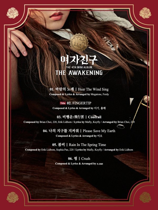 공개된 새 앨범 '디 어웨이크닝(THE AWAKENING)' 트랙리스트에는 타이틀곡 '핑거팁(FINGERTIP)'을 포함해 한층 성장하고 새로워진 여자친구의 색깔을 담아낸 다채로운 장르의 곡들로 채워졌다.