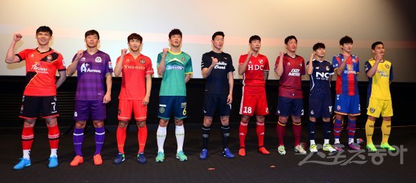 27일 서울 용산CGV에서 열린 2017 K리그 챌린지 개막 미디어데이에서 각 팀 대표 선수들이 포토타임을 갖고 있다.