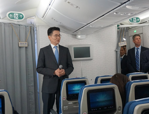 이번에 대한항공이 새로 도입한 B787-9 기종은 탄소섬유 복합소재 도입으로 무게를 줄여 연료효율을 높였고, 그 결과 260여 좌석의 중형급 기종임에도 단거리와 중장거리 노선을 모두 취항할 수 있다. 조 사장은 여객사업본부장으로 부임하던 경험을 바탕으로 B787-9 기종의 장점에 대해 “기름 많이 먹고 좌석 채우기 힘든 기종이 가장 싫었는데, 이번에 도입한 B787-9는 그런 점에서 마음에 든다”고 소개했다.