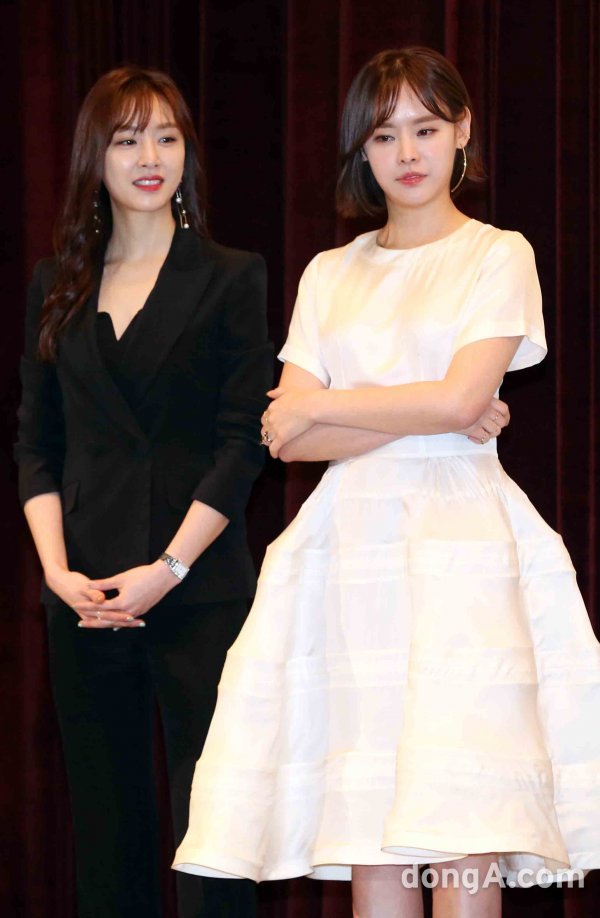 배우 서지혜(왼쪽)와 구재이가 2일 오전 서울 광화문 씨네큐브1관에서 열린 태광그룹 티캐스트 계열 패션앤(FashionN) ‘팔로우미8 제작발표회에 참석하고 있다.