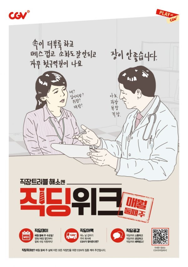 CGV가 올 연말까지 직장인들의 휴식과 문화 생활 확대를 위한 ‘CGV 직딩위크’를 개최한다고 밝혔다. 센스만점 일러스트로 화제를 모으고 있는 '그림왕 양치기' 양경수 작가와의 콜라보레이션이라는 점에서 주목할 만 하다.