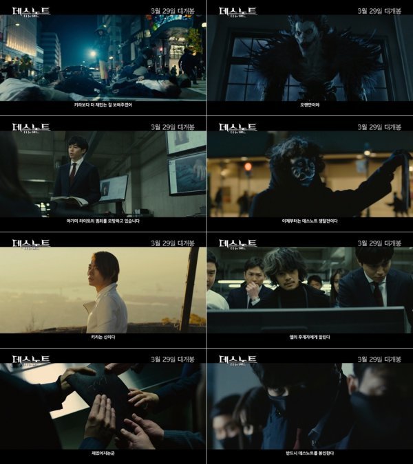 데스노트의 상징과도 같은 사신 ‘류크’의 등장으로 시작되는 메인 예고편은 지상에 떨어진 데스노트로 인해 무차별 대량 살상이 벌어져 극도의 혼란에 빠진 도쿄 시내 한복판을 보여줘 더 강력해진 파괴력을 전하고 있다. 이어 각기 다른 목적으로 데스노트를 차지하기 위해 몰려드는 새로운 캐릭터의 등장은 ‘차지할 것인가, 빼앗길 것인가’ 카피와 함께 역대급 쟁탈전의 팽팽한 긴장감을 한껏 고조시킨다.