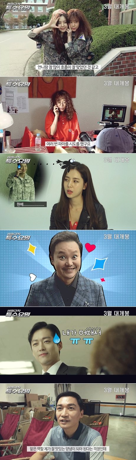 ‘비정규직 특수요원’은 보이스피싱 일망타진을 위한 국가안보국 댓글요원 '장영실'과 경찰청 미친X '나정안'의 불편하고 수상한 합동수사를 그린 언더커버 첩보 코미디. 공개된 영상 속에는 입가에 웃음이 끊이지 않는 배우들의 모습이 담겼다. 3개월이라는 빡빡한 스케줄 속에서도 밝은 표정으로 서로의 엔도르핀이 되어 주고 있는 배우들의 모습에서 이들의 두터운 친분과 웃음꽃 만발한 현장 분위기를 느낄 수 있다.