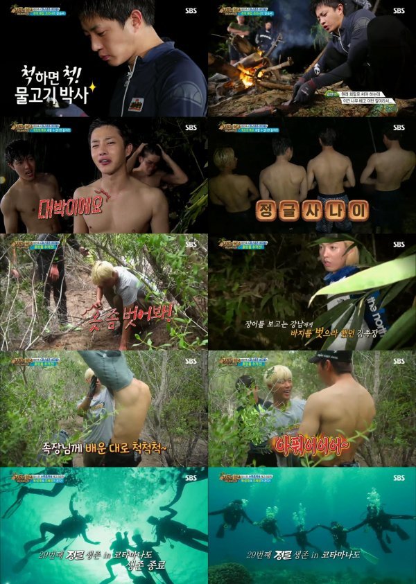 한편, ‘정글의 법칙 in 코타 마나도’ 마지막 에피소드는 끊임없이 내리는 폭우 속 병만족의 생존이 전파를 탔다. 강남과 나인뮤지스 경리, 김영철은 천둥번개를 동반한 무시무시한 비에 불이 꺼질까 봐 노심초사했다. 바다 사냥에 나갔던 김병만과 인피니트 성열, 김민석, 강태오도 위험을 느끼고 복귀했다.