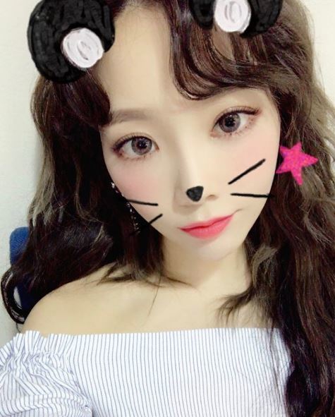 공개된 사진 속 태연은 어플을 이용해 귀엽게 합성한 생쥐 귀와 코 분장을 했다. 발그레한 볼과 하얀 피부 그리고 큰 눈에 앙다문 입술이 깜찍함을 더했다.
