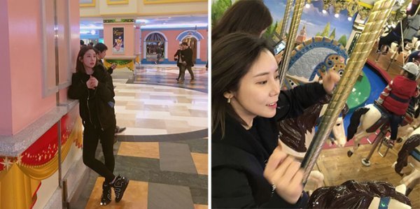 공개된 사진 속 정하나는 캐주얼한 옷차림으로 어딘가를 바라보고 있다. 또 다른 사진에서는 회전목마를 타며 즐거운 표정을 짓고 있다.