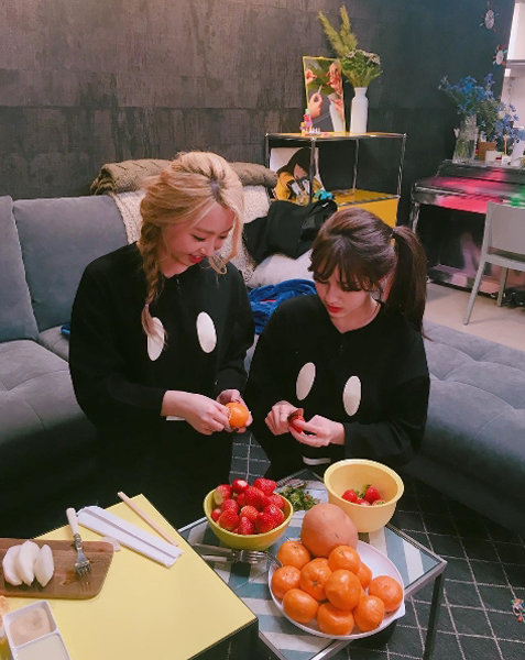 ‘민소매(민지+소미+자매)’가 나란히 다소곳한 모습이다. KBS 2TV 예능프로그램 ‘언니들의 슬램덩크’에서 화려한 춤 솜씨로 카리스마를 뽐내고 있는 두 사람이 과일을 손질하느라 정신없다. 공민지(왼쪽)는 귤 껍질을 까고, 전소미는 딸기 꼭지를 잘라내고 있다. 하지만 불안함이 느껴지는 건 왜일까. 올해 고교생이 된 전소미의 손놀림이 서툴러 보인다. 남성 팬들은 칼에 베이지 않을까 걱정스런 눈빛으로 보고 있을 것 같다.