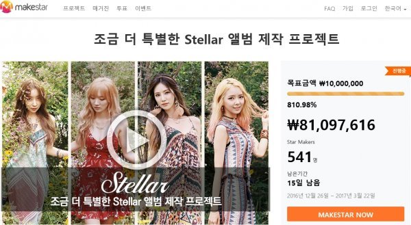 걸그룹 스텔라의 세번째 크라우드펀딩 프로젝트가 달성률 800%를 넘어섰다.