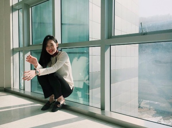 공개된 사진 속 설리는 환한 미소와 함께 창가에 기대어 있는 모습.