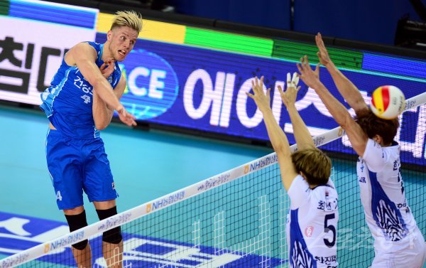 7일 인천 계양체육관에서 ‘2016-2017 NH농협 V리그’ 인천 대한항공과 대전 삼성화재의 경기가 열렸다. 삼성화재 타이스가 대한항공 블로커를 피해 스파이크를 날리고 있다.