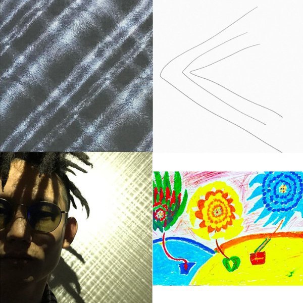 공개된 사진은 그가 직접 그린듯한 그림 3장과 특정 패턴이 보이는 사진, 그의 셀카 사진 한 장과 알 수 없는 선들을 그려놓은 그림들이다.