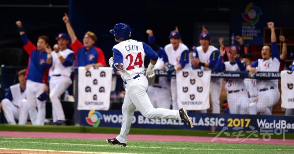 한국 WBC대표팀이 9일 고척스카이돔에서 ‘2017 월드베이스볼클래식(WBC)’ 예선 1라운드 3차전 대만과 경기를 가졌다. 4회말 1사 1루 대만 린저슈엔이 좌월 투런 홈런을 날리고 그라운드를 돌고 있다.