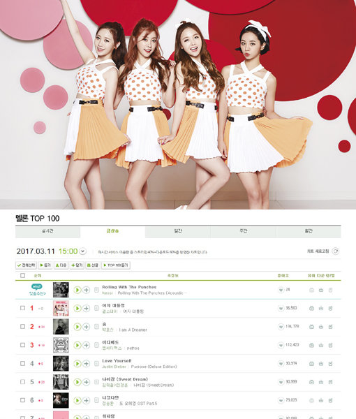 박근혜 전 대통령에 대한 헌재의 탄핵 인용 결정 직후 걸스데이의 ‘여자대통령’이 음원차트 1위에 오르는 현상이 벌어졌다. 사진출처|드림티엔터테인먼트·멜론사이트 캡처