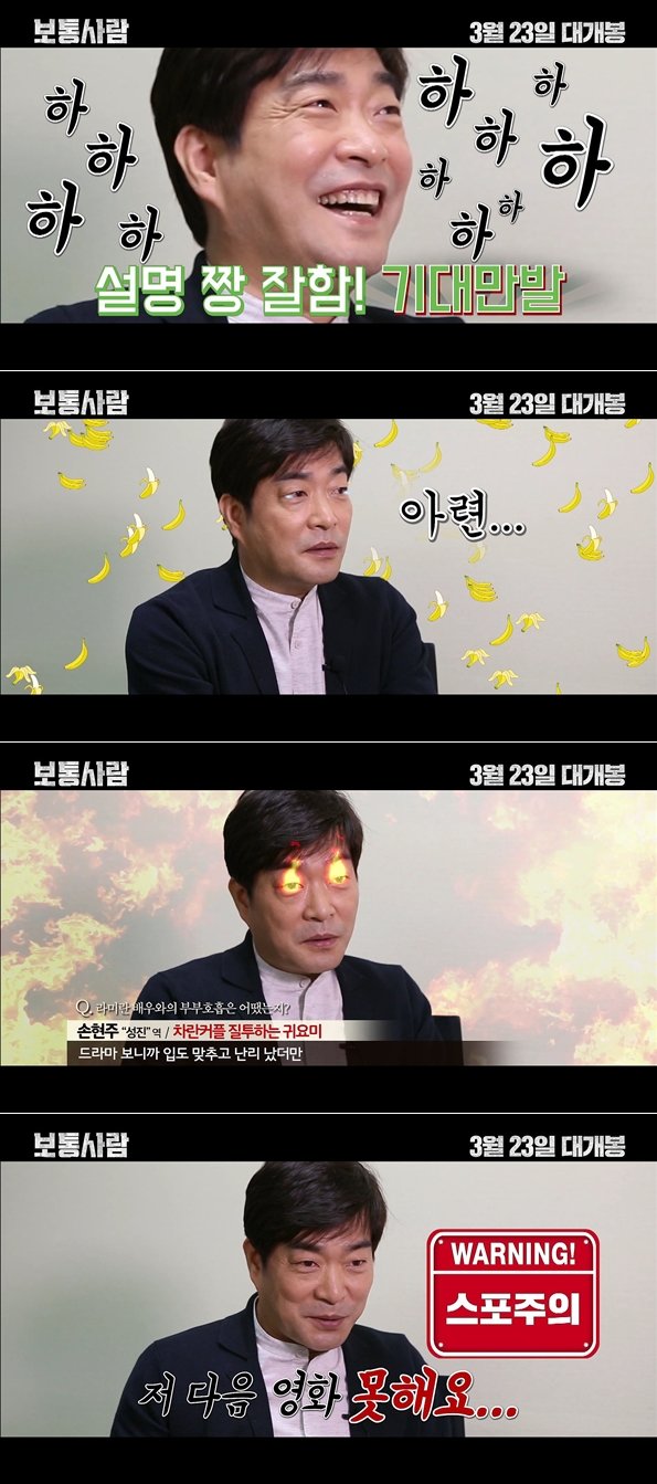 뿐만 아니라 ‘보통사람’을 통해 부부호흡을 맞춘 배우 라미란에 대해서는 최근 드라마에서 키스신을 찍은 것을 언급, 질투하는 손현주의 모습이 담겨 깨알 같은 재미를 선사한다. 한편, 영상의 마지막에는 기억에 남는 촬영장 에피소드를 말하던 손현주가 이야기를 갑자기 중단하는 모습이 담겨 단숨에 이목을 집중시키며, “저 다음 영화 못해요”라며 스포일러를 주의하는 모습이 이어져 영화에 대한 호기심을 최고조로 불러일으킨다.