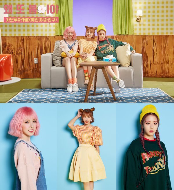 피에스타 차오루의 소속사 페이브 엔터테인먼트는 13일 0시 공식 SNS를 통해 여자친구 예린, 래퍼 키썸과 함께한 화제의 컬래버레이션 싱글 ‘왜 또 봄이야’의 재킷 이미지를 공개했다.