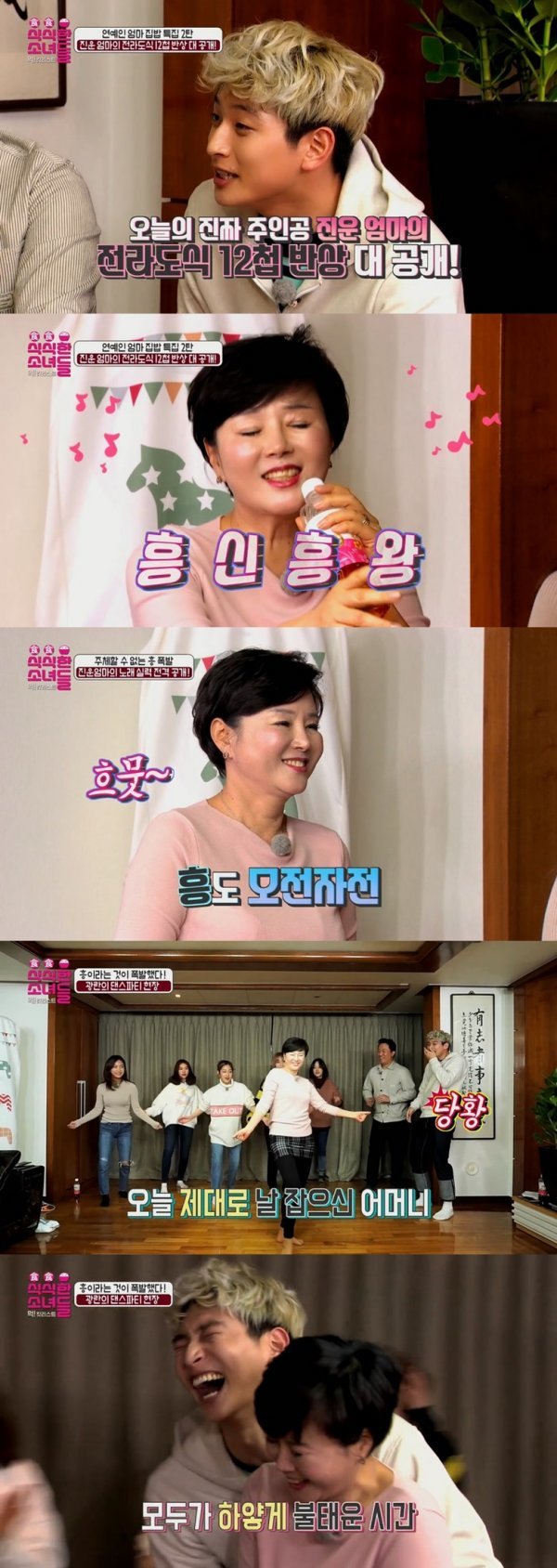 이날 방송에서 정진운의 어머니는 출중한 미모뿐만 아니라 흥과 끼, 야무진 전라도 손맛까지 뽐내며 ‘식식한 소녀들’을 자신의 매력에 흠뻑 빠져들게 만든다.
