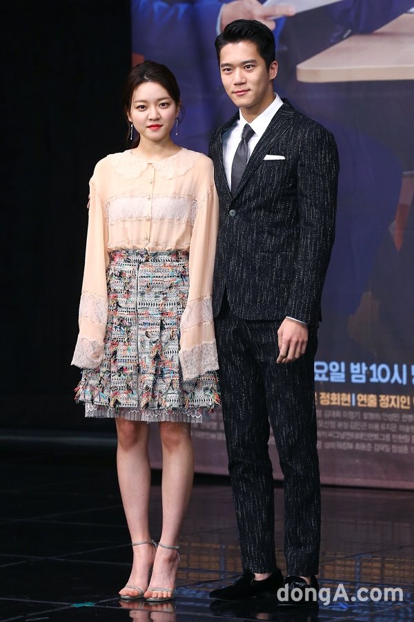 배우 고아라(왼쪽), 하석진이 13일 오후 서울 마포구 상암MBC에서 열린 수목드라마 \'자체발광 오피스\' 제작발표회에 참석해 포토타임을 하고 있다.