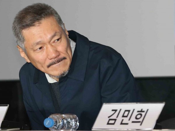 감독 홍상수가 13일 오후 서울 건대 롯데시네마에서 열린 영화 ‘밤의 해변에서 혼자’ 언론시사회에 참석하고 있다.