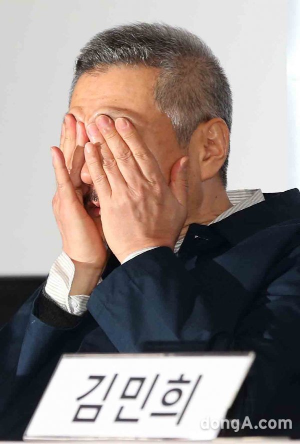 감독 홍상수가 13일 오후 서울 건대 롯데시네마에서 열린 영화 ‘밤의 해변에서 혼자’ 언론시사회에 참석하고 있다.