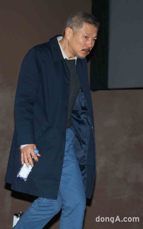 감독 홍상수가 13일 오후 서울 건대 롯데시네마에서 열린 영화 ‘밤의 해변에서 혼자’ 언론시사회에 참석하고 있다.