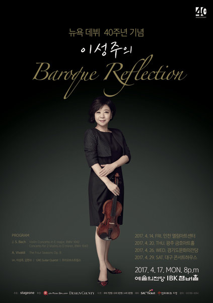바이올리니스트 이성주의 각별한 콘서트가 열린다. 뉴욕 데뷔 40주년을 기념하는 콘서트. ‘이성주의 바로크 리플렉션(Baroque Reflection)’이라는 타이틀을 달았다.