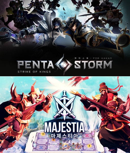 다양한 장르의 신규 모바일게임이 출시를 앞두고 사전예약을 받고 있다. 넷마블게임즈는 ‘펜타스톰 for Kakao’(위쪽)를, 컴투스는 ‘마제스티아’를 선보일 예정이다.
