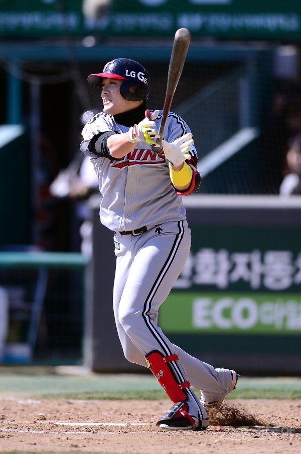 14일 대전 한화생명이글스파크에서 ‘2017 타이어뱅크 KBO 리그’ LG트윈스와 한화이글스 시범경기가 열렸다. 4회초 2사 만루 LG 대타 이형종이 싹쓸이 3타점 중전 2루타를 치고 있다.