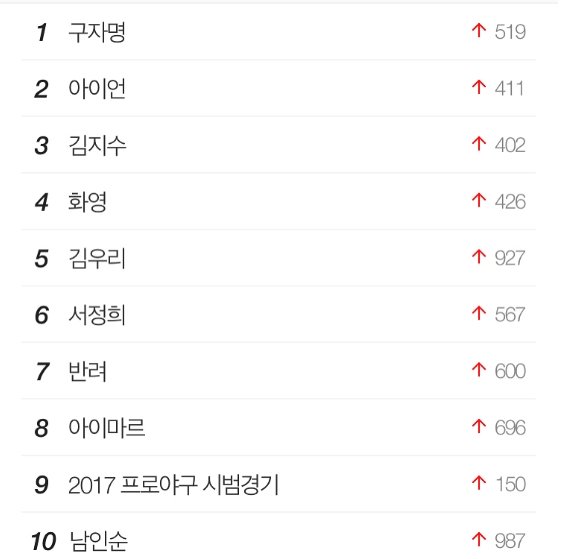 구자명은 한 포털사이트 실시간 검색어 1위에 오른 자신의 이름을 캡처한 사진도 올렸다.