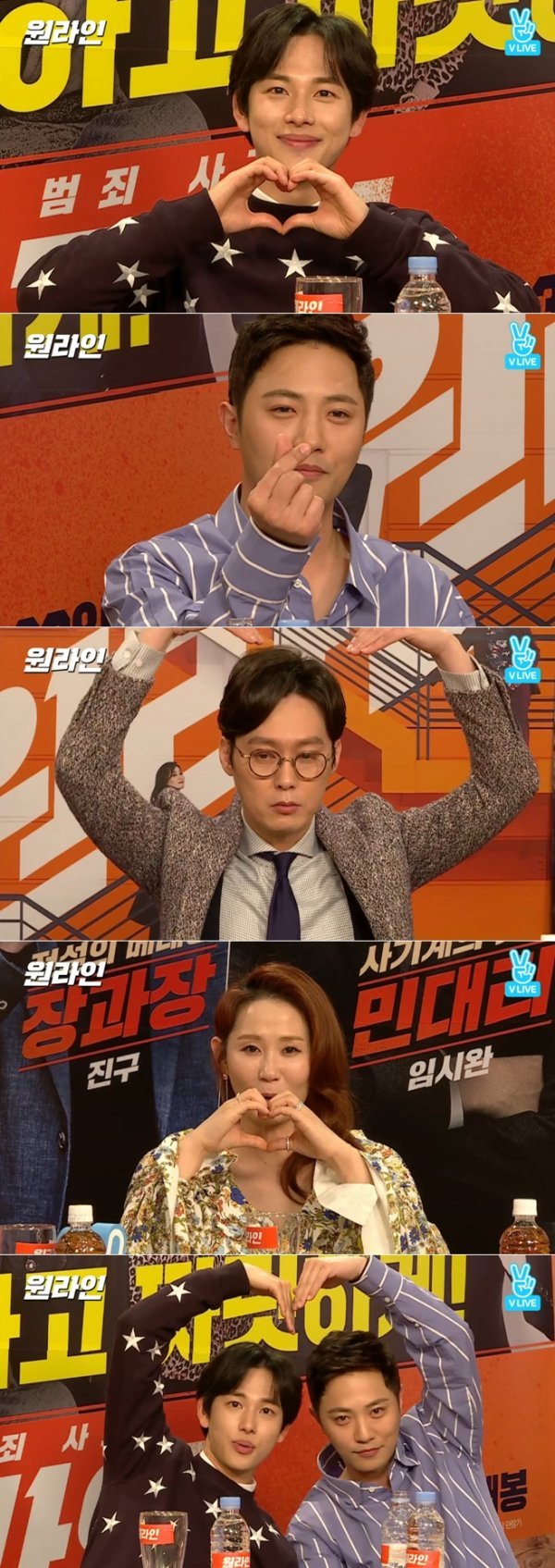 14일 오후 9시 네이버 V앱을 통해 생방송된 영화 ‘원라인’(제작 미인픽쳐스/배급 NEW) 무비토크. 행사에는 ‘원라인’ 주연 배우 진구 임시완 박병은 김선영이 참석한 가운데 회식 콘셉트로 진행됐다. 이동휘는 일정상 불참했다.