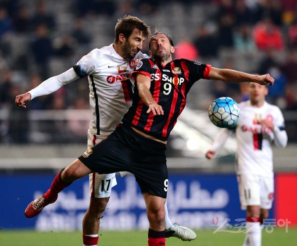 15일 서울월드컵경기장에서 열린 2017 아시아축구연맹(AFC) 챔피언스리그(ACL) F조 3차전 FC서울과 웨스턴 시드니(호주) 경기에서 서울 데얀과 시드니 보르다가 공중볼을 다투고 있다.