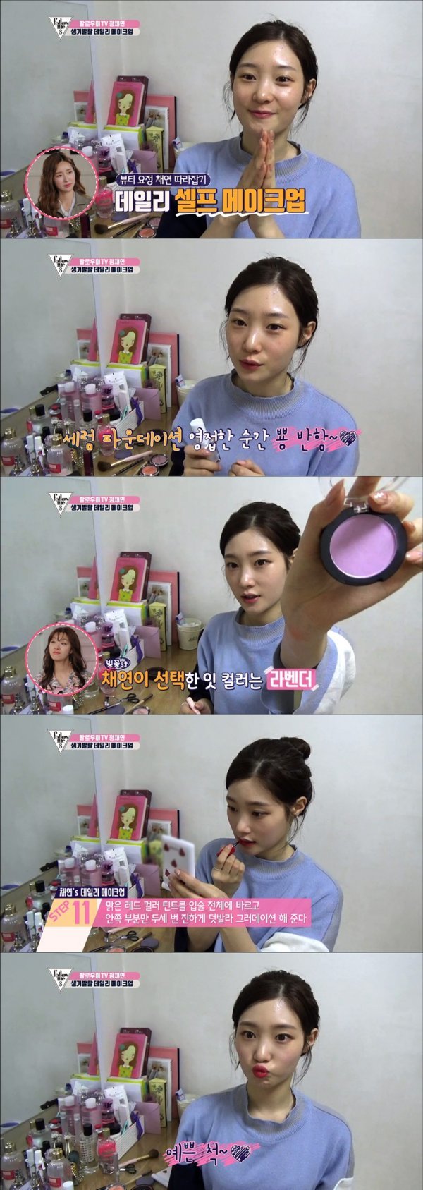 이어서 시작된 셀프 데일리 메이크업에서도 정채연은 의외의 실력을 발휘해 다른 출연진을 놀라게 했다. 정채연은 자신의 피부를 “악건성”이라 소개하며 세럼 파운데이션을 사용해 피부를 촉촉하게 표현하는 똑똑한 메이크업을 선보였다.